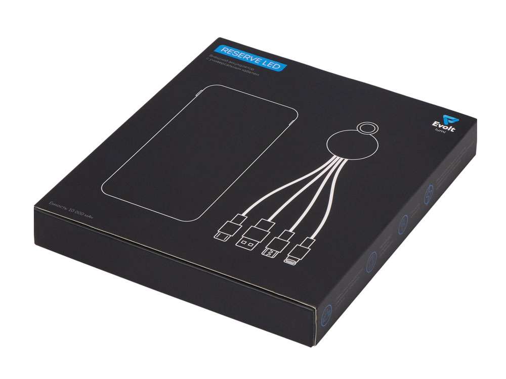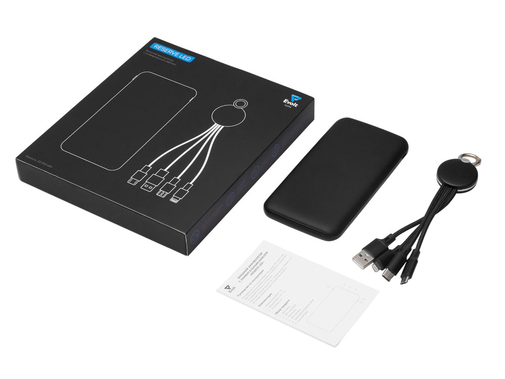 Набор из внешнего акуумулятора и универсального кабеля с подсветкой лого Reserve LED, 10000mAh, черный купить оптом и в розницу с нанесением логотипа в Казани