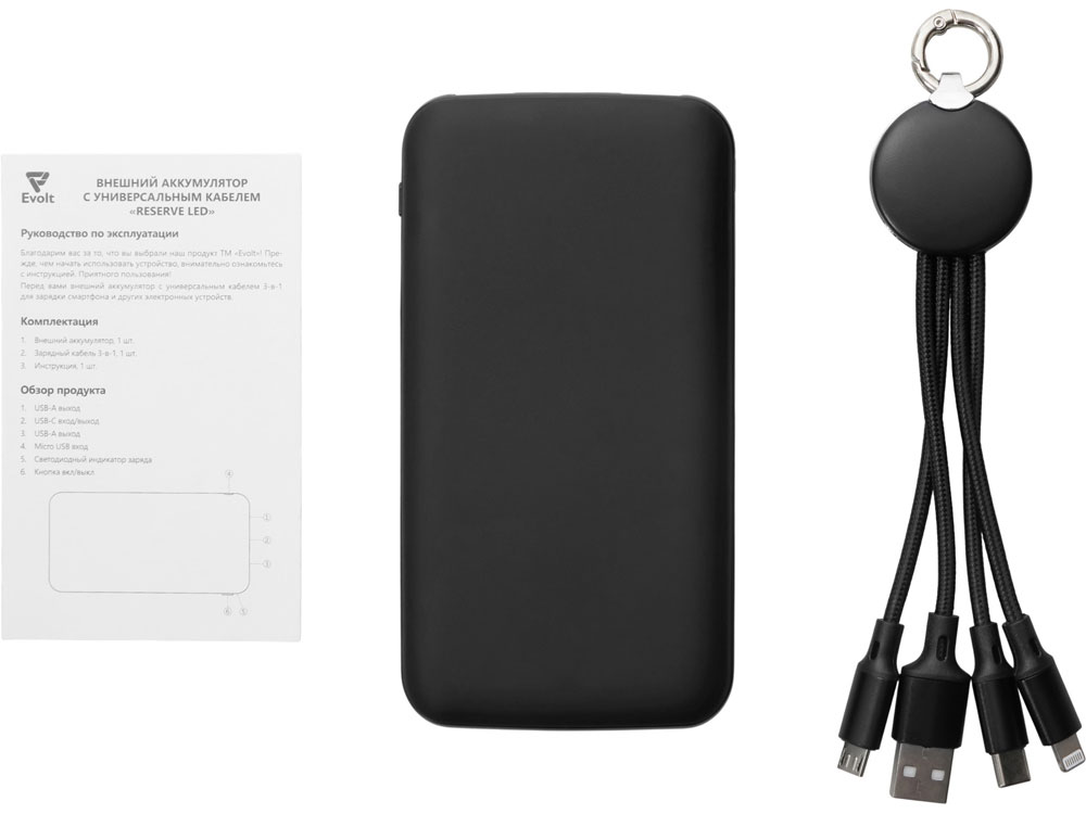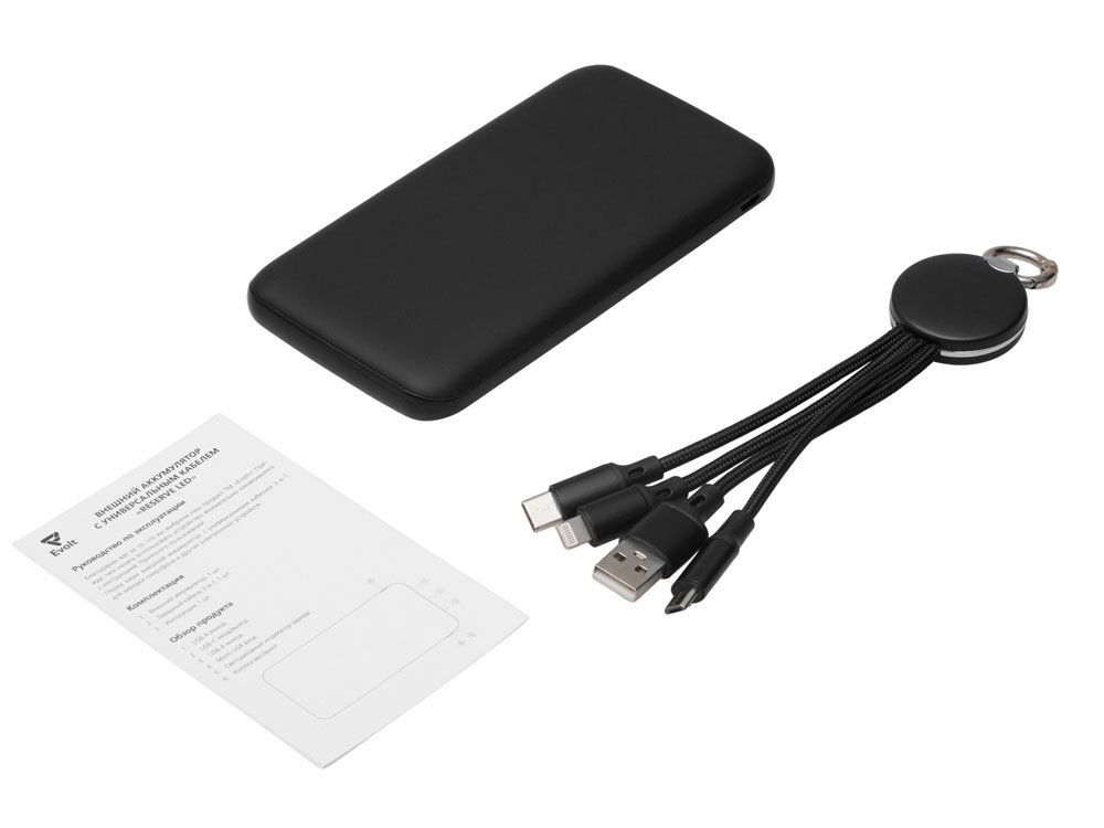 Набор из внешнего акуумулятора и универсального кабеля с подсветкой лого Reserve LED, 10000mAh, черный