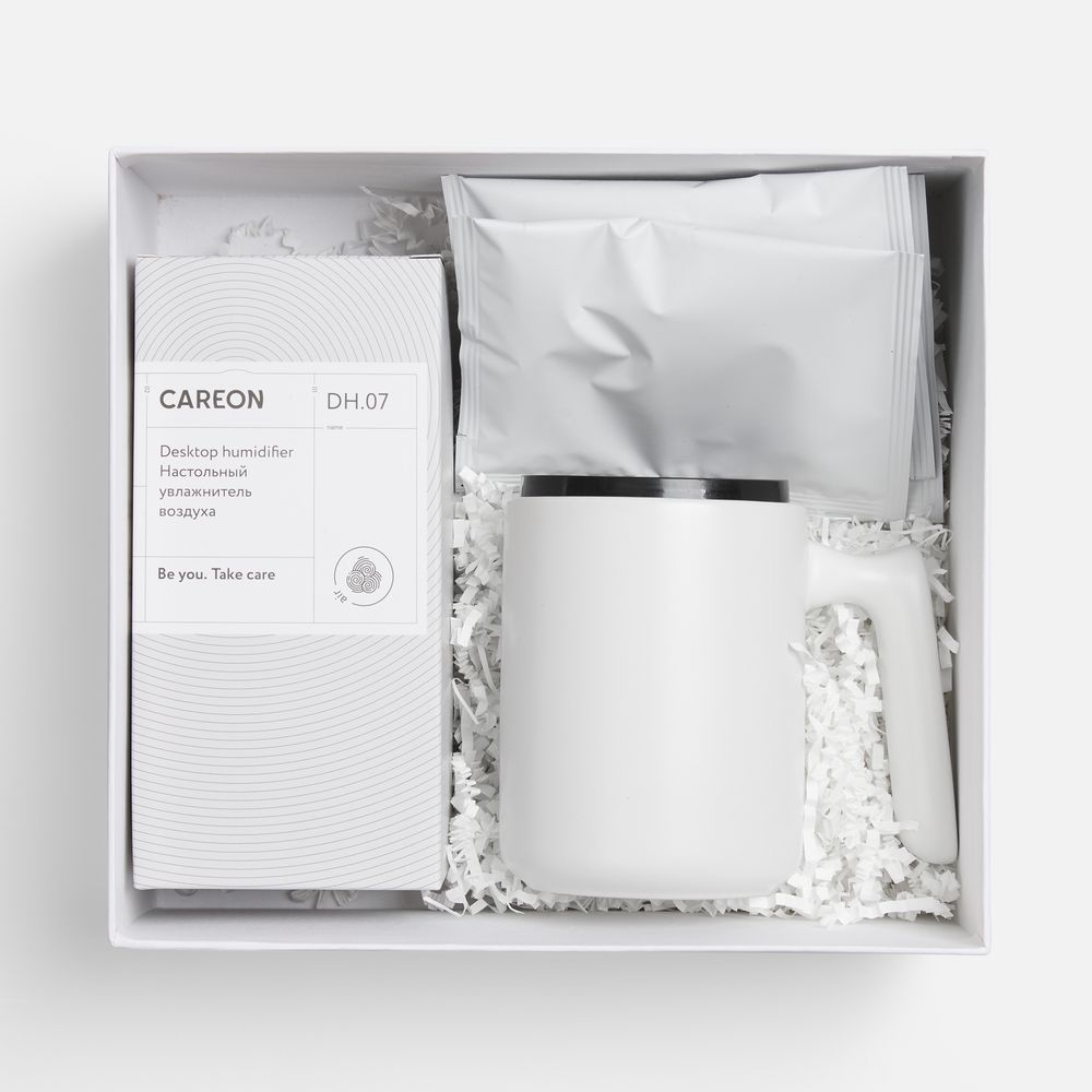 Набор «Микроклимат» создаст идеальную атмосферу — для бодрости или расслабления! Увлажнитель смягчает воздух, поможет снять усталость и мыслить ясно. В удобной керамической кружке Visari любимый напиток сохранит тепло, дрип-пакеты позволят легко приготовить вкусный кофе без лишних приборов, а фундук в шоколаде станет изящным завершением вашего ритуала наслаждения.