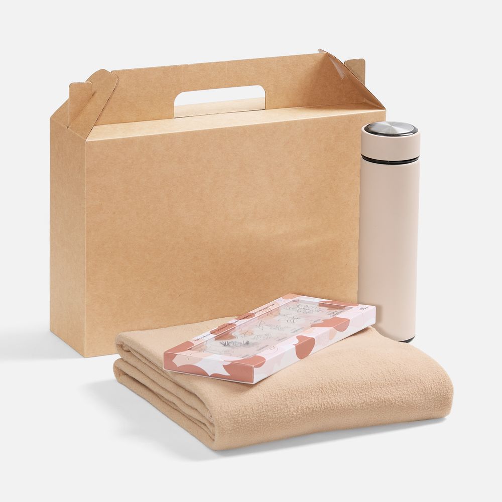 Материал термос - нержавеющая сталь, покрытие софт-тач; плед - флис; коробка - микрогофрокартон