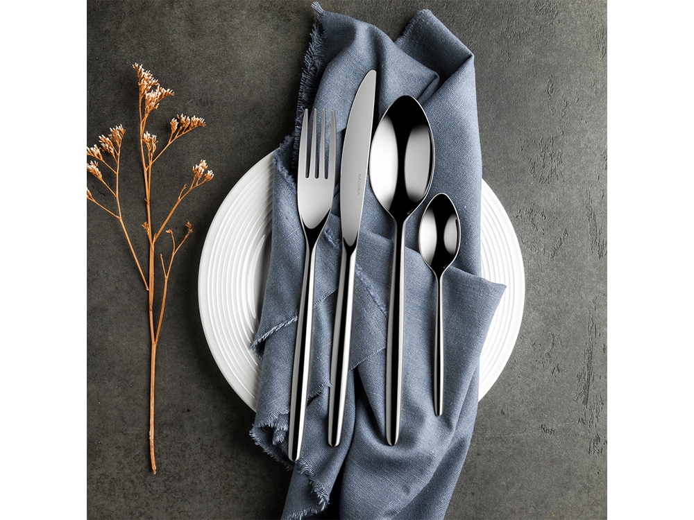 Приборы серии Mia изготовлены из высококачественной нержавеющей стали. Они устойчивы к механическим повреждениям и воздействию любых сред, не меняют вкус блюд и долгое время сохраняют превосходный вид, полученный благодаря высокой степени полировки. Гарантия на столовые приборы серии Mia 10 лет. Комплектность: 1. Столовая ложка, 6 шт 2. Столовая вилка, 6 шт 3. Столовый нож, 6 шт 4. Чайная ложка, 6 шт