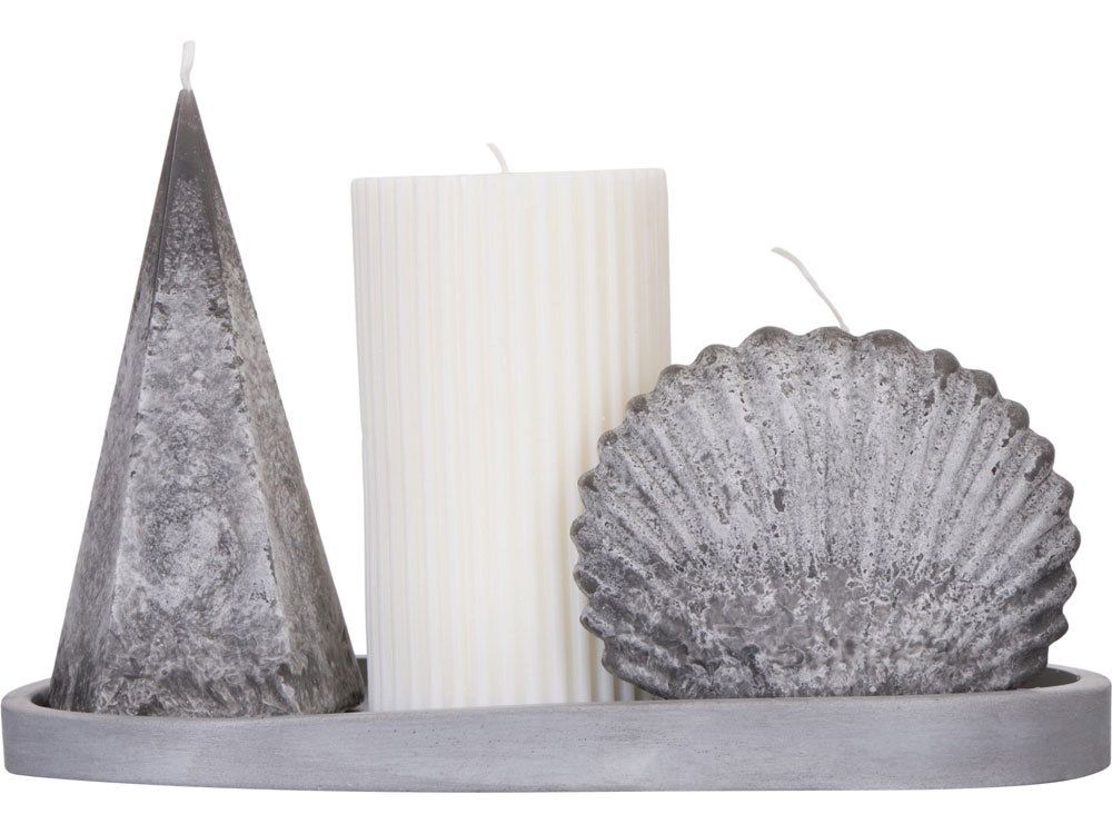 Этот набор из трех ароматических свечей непременно понравится приверженцам минимализма и стилей хай-тек, лофт, эко и скандинавского. Лаконичная геометрия, сочетающаяся с природным дизайном ракушки, натуральные молочный и неоднородный серый оттенки и подставка из гипсобетона смотрятся естественно, стильно и ненавязчиво. Благородный аромат черного перца и кожи, одновременно свежий и терпкий, подарит ощущение комфорта и уверенности. Свечи на 80% изготовлены из натуральных соевого и кокосового воска, не токсичны при горении и не вредны для дыхания. После того как свечи прогорят, подставку можно использовать для пало санто или других благовоний, а также для хранения различных мелочей или ювелирных украшений. - Минималистичный дизайн - Многофункциональная подставка из гипсобетона - Экосостав - Ручная работа