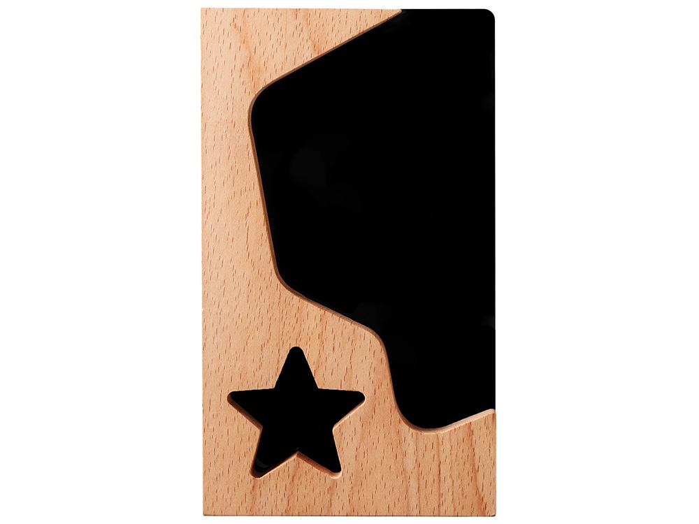 Красивая и современная награда для главных звезд любой компании. Черный акрил добавляет контраста рамке из бука, логотип или наградную надпись можно выгравировать на деревянной части или сделать уникальный дизайн, благодаря полной запечатке акрила методом УФ-печати.