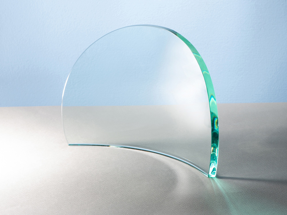 Награда выполнена из прозрачного стекла, не имеет постамента и никаких отвлекающих деталей. Минималистична и лаконична. Благодаря слегка изогнутой поверхности персонализация на ней смотрится панорамно. • Лаконичный дизайн • Прозрачное стекло • Изогнутая поверхность