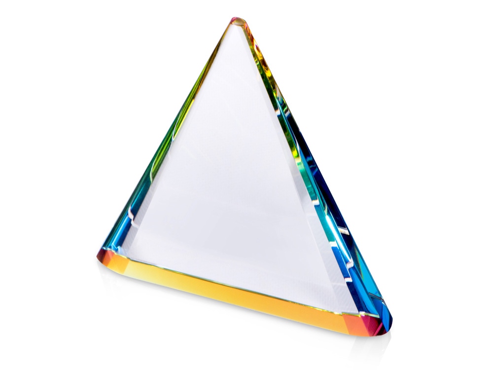 Награда выполнена из прозрачного стекла, переливающегося на свету всеми цветами радуги, и не имеет постамента. Под разными углами награда сияет разными цветами, а иногда и всем радужным спектром сразу. Одновременно минималистична и оригинальна. • Лаконичный дизайн • Переливается всеми цветами радуги