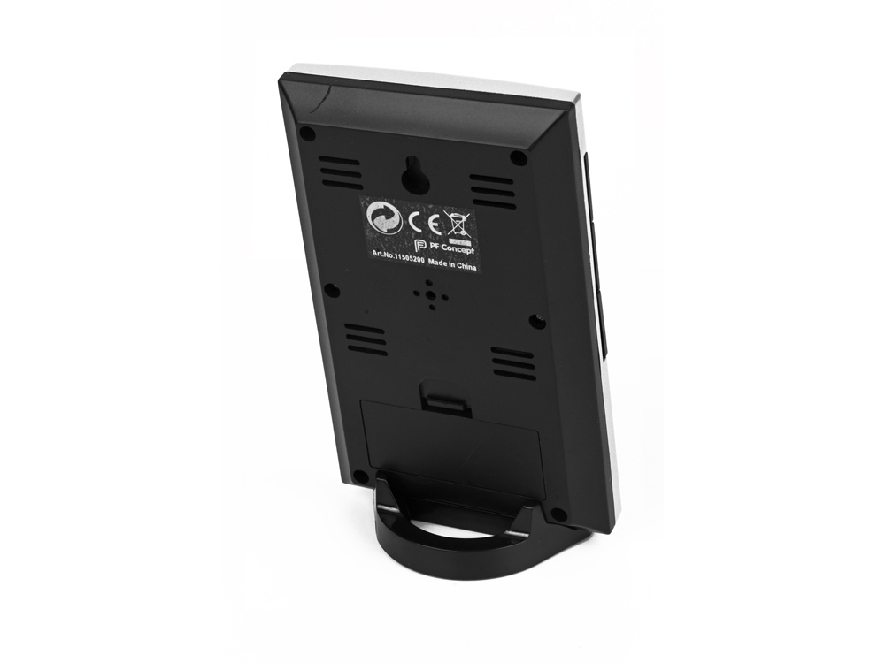 Настольная метеостанция с будильником с повторением сигнала, с указанием даты и дня недели, подсветкой, термометром в градусах по Цельсию и Фаренгейту, гигрометром и прогнозом погоды. Требуются 2 батарейки размера AAA (не включены в комплект). Пластик.
