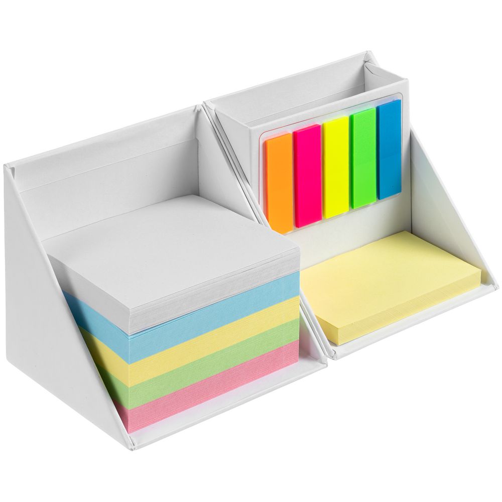| Размеры | 9х9х9 см; блок бумаги 7,5х7,5 см; блок листов с клейкой лентой 7,5х5 см; пластиковые закладки 4,5х1,2 см |