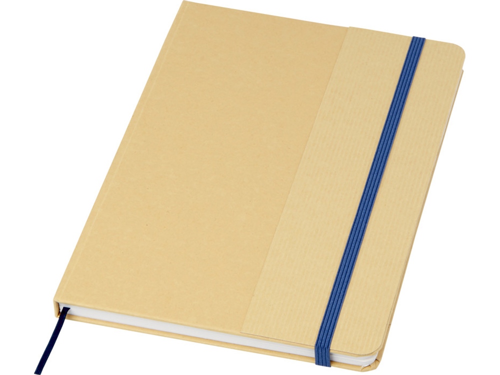 Блокнот формата А5 в твердой обложке из переработанного картона, 80 листов бумаги плотностью 70 г/м² в линейку. Блокнот имеет эластичную застежку, ленту и закругленные углы. FSC certified paper. FSC Mix 100% P7.1 CU-COC-877277.