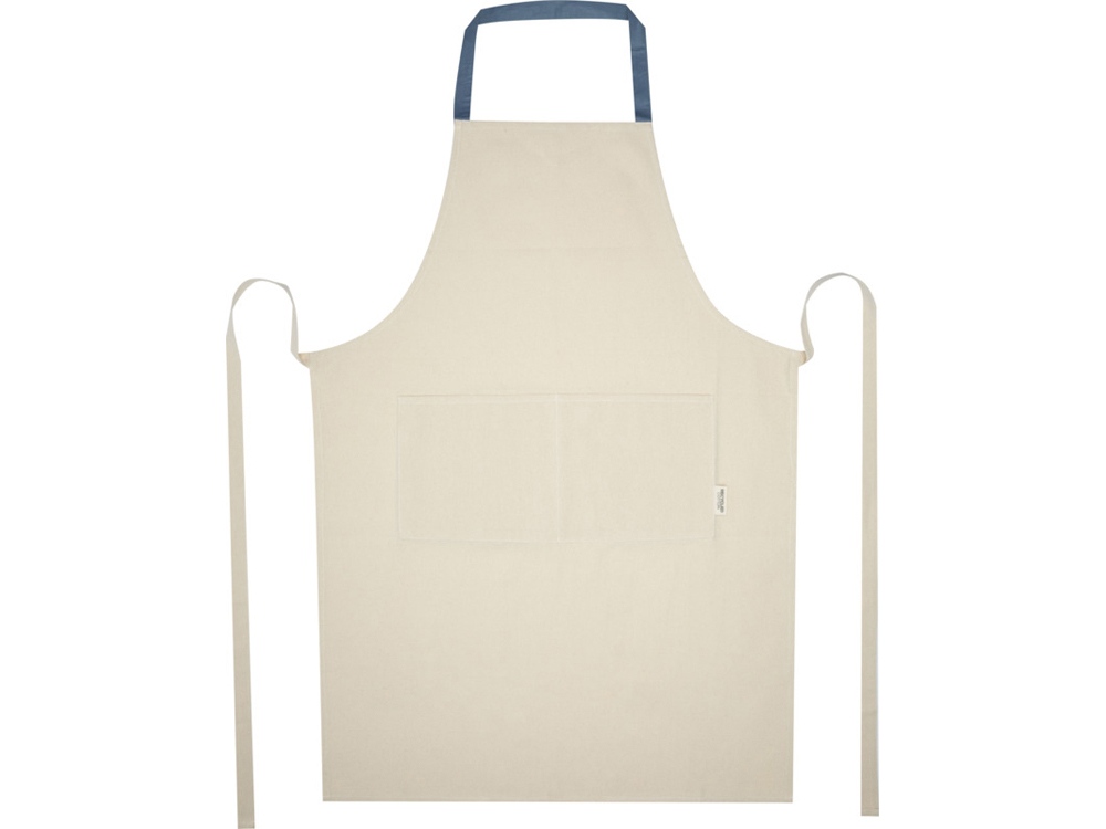 Фартук Nia изготовлен из 100% сертифицированного GRS переработанного хлопка плотностью 200 г/м². Этот фартук из натурального хлопка с контрастной петлей на шее защитит вашу одежду во время приготовления пищи. Фартук Nia с двумя соседними карманами общим размером 45 x 20 см и завязками длиной 1 метр обеспечивает обеспечивает практичность и стиль на вашей кухни. GRS certified recycled cotton, 210 g/m2.
