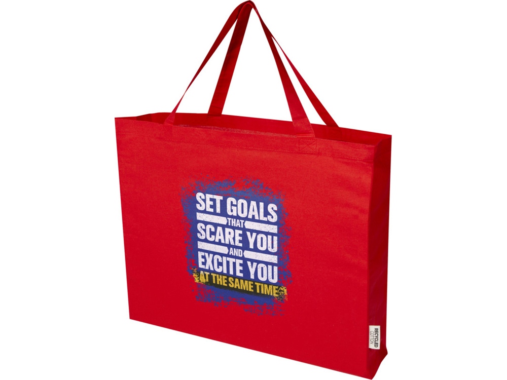 Эко-сумка Odessa, изготовленная из 100% переработанного хлопка, сертифицированного по стандарту GRS, создана для удобного ношения благодаря ручкам на плечо длиной 30 см и очень большому основному отделению с ластовицей. Независимо от того, хотите ли вы носить с собой тяжелые книги или продукты, эта сумка предназначена для удовлетворения любых потребностей. Методы печати, доступные для этой эко-сумки, также сертифицированы, что гарантирует прозрачность и сертификацию всей цепочки поставок. Хлопок плотностью 220 г/м² обеспечивает долговечность и надежность и позволяет переносить вес до 10 кг. Сделано в Индии. GRS certified recycled cotton.