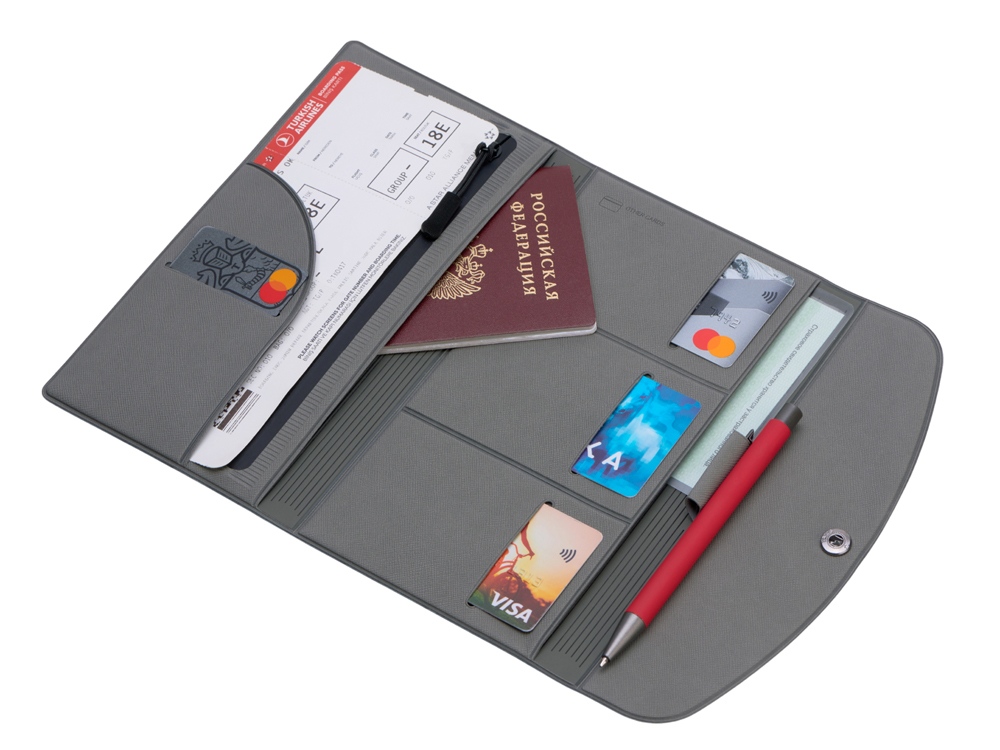 Этот стильный и практичный дорожный органайзер Favor станет незаменимым помощником в любом путешествии! С ним всё необходимое будет всегда на своих местах. Современный дизайн и продуманная конструкция сделают путешествие еще более комфортным и беззаботным. Преимущества: - Удобные отделения для паспорта, билетов, карт и страхового полиса. - Дополнительное отделение на молнии для мелочи или купюр. - Надёжная застежка на кнопку. - Компактный размер. - Петля для ручки.