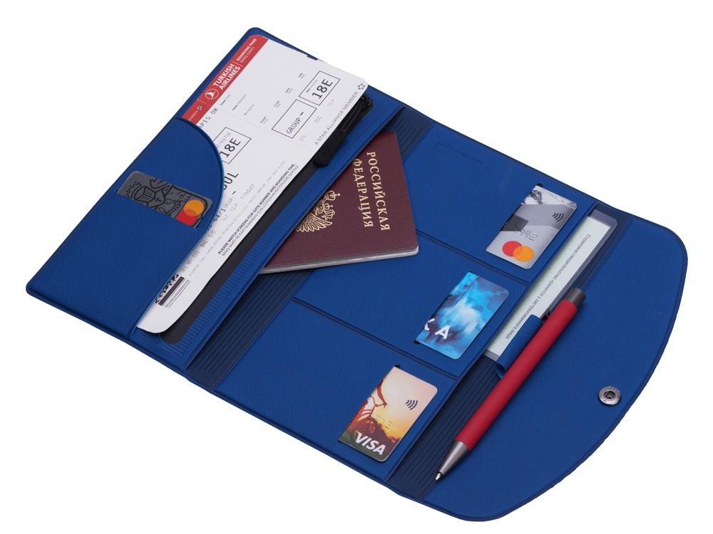 Этот стильный и практичный дорожный органайзер Favor станет незаменимым помощником в любом путешествии! С ним всё необходимое будет всегда на своих местах. Современный дизайн и продуманная конструкция сделают путешествие еще более комфортным и беззаботным. Преимущества: - Удобные отделения для паспорта, билетов, карт и страхового полиса. - Дополнительное отделение на молнии для мелочи или купюр. - Надёжная застежка на кнопку. - Компактный размер. - Петля для ручки.