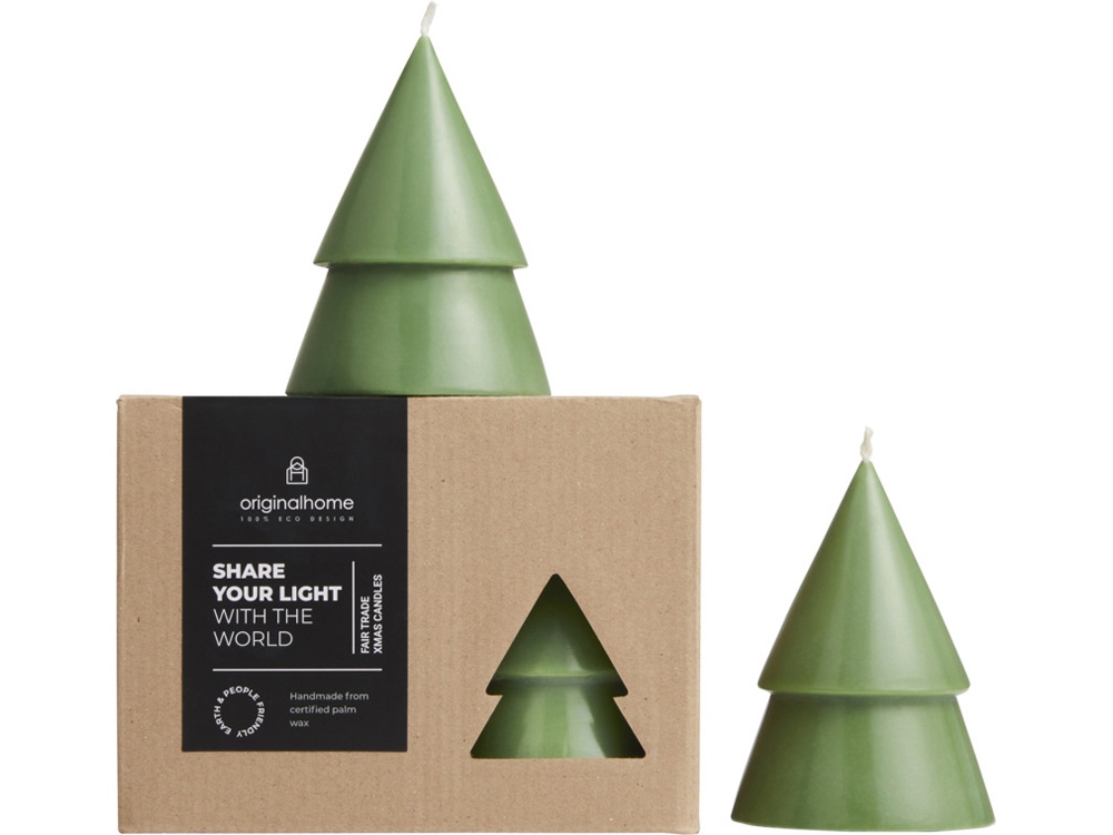 Свеча без запаха в виде елки среднего размера от Originalhome на 100% натуральная и изготовлена вручную из сертифицированного пальмового воска. Это идеальный рождественский подарок для всех, с кем хочется поделиться светом и теплом. Свеча горит примерно 15-17 часов. Palm kernel wax.
