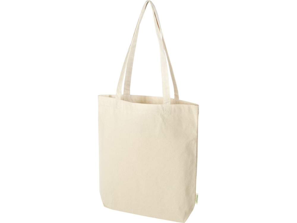 Эко-сумка Orissa с широким дном и длинными ручками, изготовленная из 100% органического хлопка, сертифицированного согласно GOTS, плотностью 270 г/м², станет более ответственным и долговечным выбором для ваших повседневных нужд. Благодаря широкому дну в нем предусмотрено дополнительное место для самых необходимых вещей на любой случай — от похода по магазинам до повседневной прогулки. Объем: 10 литр. Органический хлопок.