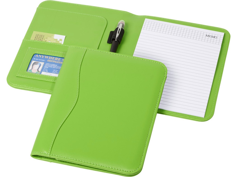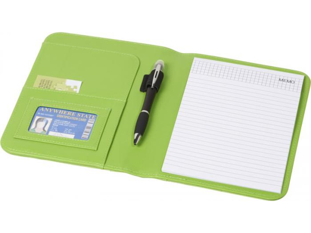 Папка с держателем для ручки, карманами для документов и блокнотом А5 с 20 страницами линованной бумаги. Ручка и принадлежности не включены.