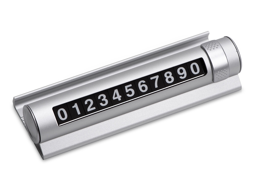 Парковочная табличка идеально подойдет для того, чтобы сообщить о вашем номере телефона водителям, которым может помешать автомобиль. Оборудована поворотным механизмом, что позволяет открыть/закрыть номер за секунду. Съемные магнитные цифры поставляются в комплекте, надежно крепятся на панели и не боятся тряски. При этом обратная сторона парковочной таблички выполняет функции подставки для телефона, который можно удобно установить на приборной панели. Для надежной фиксации в комплект приложены клеевые крепления. - выполнена из металла: долговечная, не боится перепадов температур - удобный поворотный механизм - магнитные цифры фиксируются на панели и не рассыпаются от тряски - подставка для телефона - клеевые крепления
