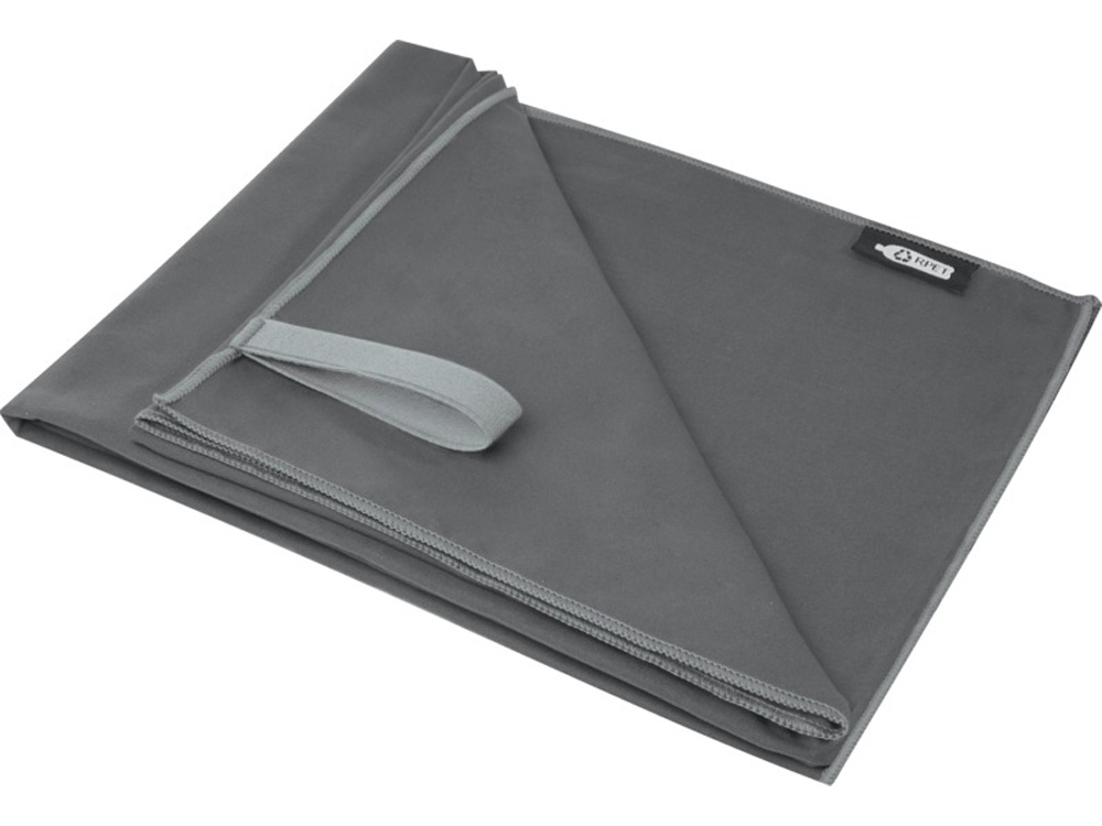 Это спортивное полотенце очень хорошо впитывает влагу, легкое, быстро сохнет. Кроме того, ткань прочная и чрезвычайно мягкая. Когда полотенце сложено и закреплено резинкой, оно уменьшается до небольшого размера, поэтому его удобно брать с собой в тренажерный зал, бассейн, на пешую прогулку или в поход. Полотенце имеет размер 130 x 80 см и изготовлено из переработанного РЕТ-полиамида плотностью 200 г/м2, его можно стирать в стиральной машине при 40 °C. Поставляется с сумкой для хранения (20 x 8,5 см) из переработанного РЕТ-пластика, на которой достаточно места для нанесения логотипа.