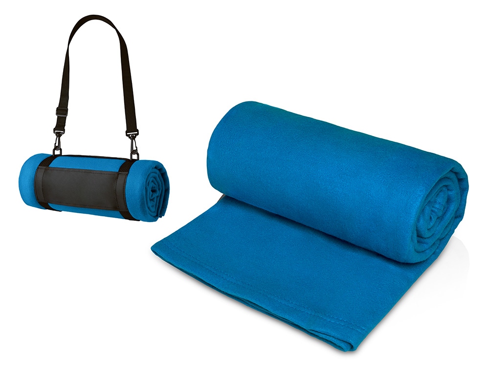 Плед Нежность с плечевым ремнем, синий купить оптом и в розницу с нанесением логотипа в Казани