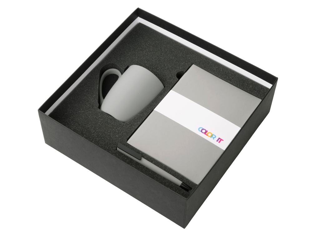 Color It — линейка, в которую входят хиты мерча в десяти самых популярных цветах. Еще никогда собрать сет под свой брендбук не было так просто. Широкая цветовая палитра серии позволяет создать идеальный набор в едином оттенке Pantone. Все товары имеют тактильно приятное покрытие софт-тач. Сет поставляется в коробке: мы продумали все, включая подарочную упаковку, за вас — осталось нанести лого! Фарфоровая кружка с удобной ручкой брендируется методом гравировки, поэтому нанесение будет долговечным и не сотрётся при мытье кружки. Бизнес-блокнот в гибкой обложке имеет ляссе в тон обложки и среза. Бумажный блок разлинован в линейку и выполнен из бумаги, полученной из древесины из специальных восполняемых лесных ресурсов, имеет сертификат FSC. Тонкое письмо ручки обеспечивается пишущим узлом с толщиной письма 0,5 мм с нажимным механизмом. Ручка имеет сменный стержень, поэтому такой мерч прослужит дольше обычной одноразовой ручки, долго напоминая о вас клиентам. - объём кружки: 300 мл; - блокнот А5 128 листов; - ручка с необычным слайдером; - подарочная упаковка из картона, оклеенного дизайнерской бумагой уже включена в набор.