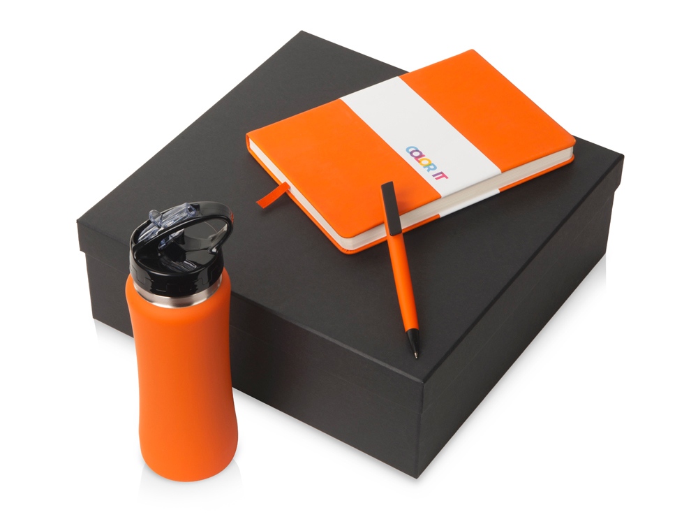 Color It — линейка, в которую входят хиты мерча в десяти самых популярных цветах. Еще никогда собрать сет под свой брендбук не было так просто. Широкая цветовая палитра серии позволяет создать идеальный набор в едином оттенке Pantone. Все товары имеют тактильно приятное покрытие софт-тач. Сет поставляется в коробке: мы продумали все, включая подарочную упаковку, за вас — осталось нанести лого! Спортивная бутылка для воды сделана из нержавеющей стали, а в пластиковой крышке предусмотрено специальное отверстие для питья, которое позволяет пить в движении. Бизнес-блокнот в твёрдой обложке имеет ляссе в тон обложки и среза. Бумажный блок разлинован в линейку и выполнен из бумаги, полученной из древесины из специальных восполняемых лесных ресурсов, имеет сертификат FSC. Тонкое письмо ручки обеспечивается пишущим узлом с толщиной письма 0,5 мм с нажимным механизмом. Ручка имеет сменный стержень, поэтому такой мерч прослужит дольше обычной одноразовой ручки, долго напоминая о вас клиентам. - объём бутылки: 600 мл; - блокнот А5 128 листов; - ручка с необычным слайдером; - подарочная упаковка из картона, оклеенного дизайнерской бумагой уже включена в набор.