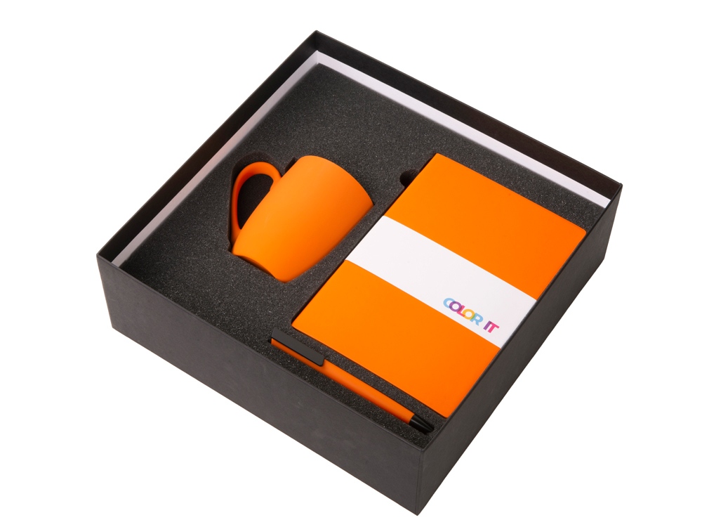 Color It — линейка, в которую входят хиты мерча в десяти самых популярных цветах. Еще никогда собрать сет под свой брендбук не было так просто. Широкая цветовая палитра серии позволяет создать идеальный набор в едином оттенке Pantone. Все товары имеют тактильно приятное покрытие софт-тач. Сет поставляется в коробке: мы продумали все, включая подарочную упаковку, за вас — осталось нанести лого! Фарфоровая кружка с удобной ручкой брендируется методом гравировки, поэтому нанесение будет долговечным и не сотрётся при мытье кружки. Бизнес-блокнот в твёрдой обложке с магнитным держателем для ручки имеет ляссе в тон обложки и среза. Бумажный блок разлинован в линейку и выполнен из бумаги, полученной из древесины из специальных восполняемых лесных ресурсов, имеет сертификат FSC. Тонкое письмо ручки обеспечивается пишущим узлом с толщиной письма 0,5 мм с нажимным механизмом. Ручка имеет сменный стержень, поэтому такой мерч прослужит дольше обычной одноразовой ручки, долго напоминая о вас клиентам. - объём кружки: 300 мл; - блокнот А5 128 листов; - ручка с необычным слайдером; - подарочная упаковка из картона, оклеенного дизайнерской бумагой уже включена в набор