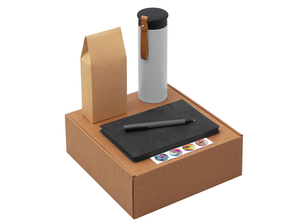 Функциональный и сбалансированный набор для сотрудников, партнёров или клиентов — отлично подойдёт для welcome-боксов, тимбилдингов, внутренних мероприятий и корпоративных праздников. Состав набора: • Блокнот — удобный формат для записей, брифов и ежедневных задач • Ручка — классическая, с необычным слайдером и приятной soft-touch поверхностью делает письмо более комфортным. • Термос из долговечной нержавеющей стали с двойными стенками, вакуумная изоляция между которыми помогает сохранять температуру напитков в течение долгого времени. Термос идеально подходит для заваривания чая: специально для этого в комплекте идет металлическое ситечко с ручкой, которое не пропустит ни одной чаинки. • Классический чёрный байховый чай поможет взбодриться и освежить мысли, поэтому его можно пить утром для лёгкого пробуждения или днём — чтобы восстановить силы и сосредоточиться. Вечером он станет приятным завершением дня в сочетании с десертом или лёгкими закусками. • Набор стикеров — для ярких акцентов и персонализации вещей; • Универсальный ложемент обеспечивает аккуратное размещение и надёжную фиксацию элементов, делая набор эффектным и презентабельным при вручении. • Дополнительное преимущество — набор доступен в конструкторе наборов: компоненты можно заменить и собрать индивидуальный вариант под стиль компании или вкусы получателя. • Готовое решение для корпоративных подарков • Все элементы функциональны и актуальны для повседневного использования
