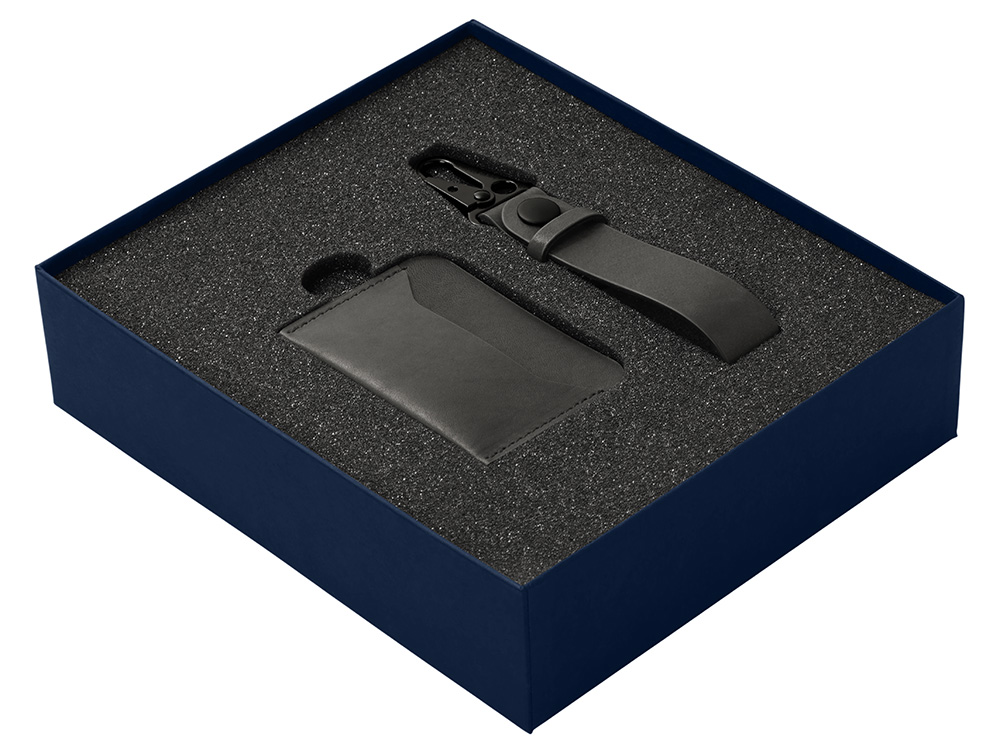 Подарочный набор Long River: картхолдер, ремешок для ключей (без лого Long River), синяя коробка купить оптом и в розницу с нанесением логотипа в Казани
