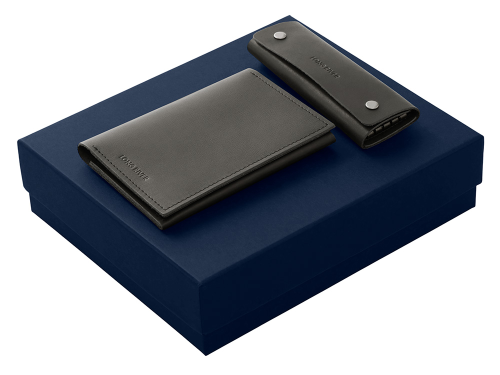 Подарочный набор Long River: обложка для паспорта, ключница, синяя коробка