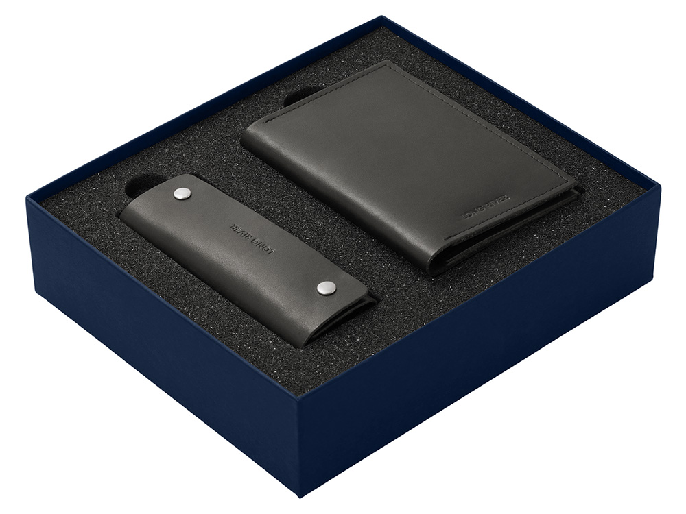 Подарочный набор Long River: обложка для паспорта, ключница, синяя коробка купить оптом и в розницу с нанесением логотипа в Казани