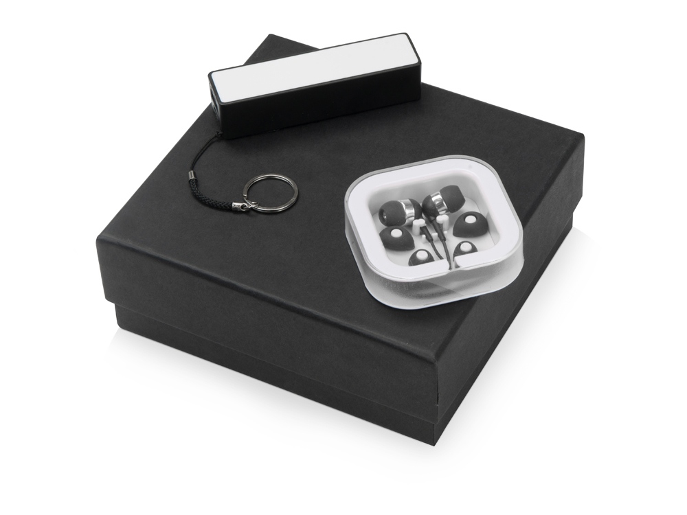 Подарочный набор Non-stop music с наушниками и зарядным устройством, черный купить оптом и в розницу с нанесением логотипа в Казани