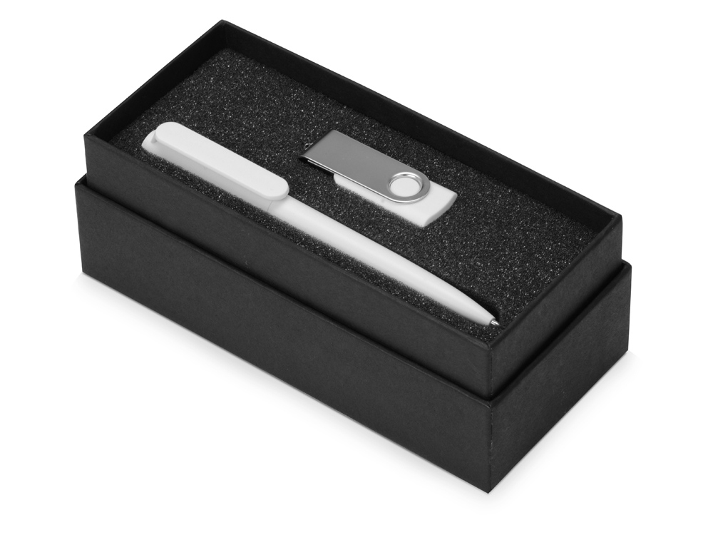 Подарочный набор Qumbo с ручкой и флешкой, белый купить оптом и в розницу с нанесением логотипа в Казани