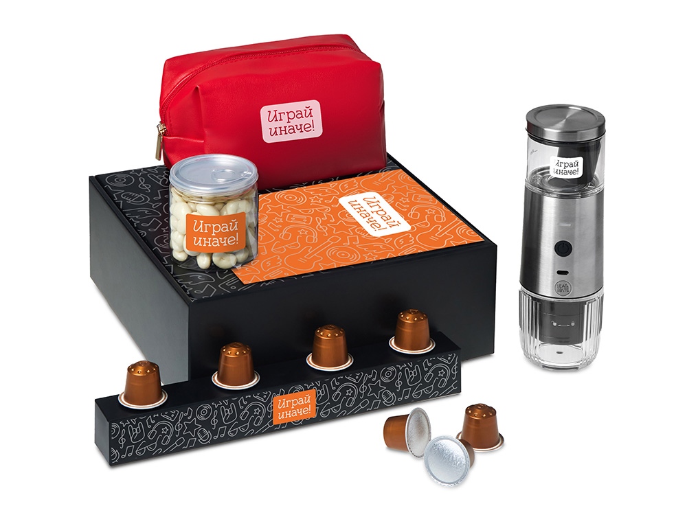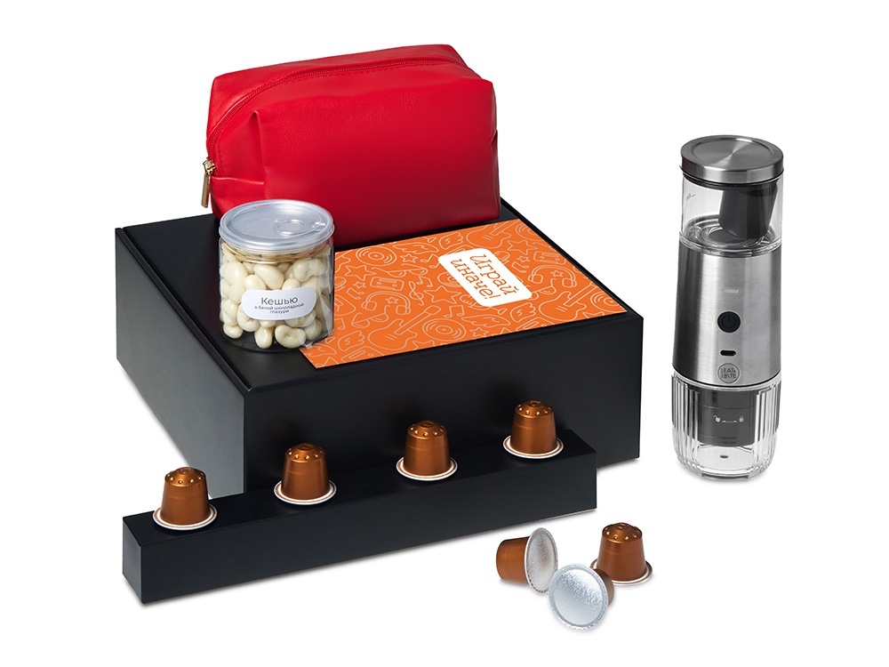 Наборы серии Re: напоминают: важнее всего человек, а не его роль. Они дарят возможность замедлиться и насладиться настоящим. Каждый набор — как мини-ритуал: согреться, почувствовать себя, поблагодарить и восстановиться после дней, полных скорости, дедлайнов и шума. Re:y. — Универсальные наборы для осознанного отдыха, которые помогут отстраниться от информационного шума, замедлиться и подарить себе время на настоящую жизнь и личные моменты счастья. Набор Re:y. Boost о бодрости, энергии и маленьких ритуалах, которые можно взять с собой. Портативная кофемашина и кофе в капсулах позволяют приготовить ароматный напиток дома, в офисе или на прогулке. Кешью в глазури добавляет сладкую нотку, а косметичка позволяет взять любимые вещи с собой, куда бы вы ни отправились.. Этот набор превращает привычный утренний ритуал в момент бодрости и комфорта, где бы вы ни были.