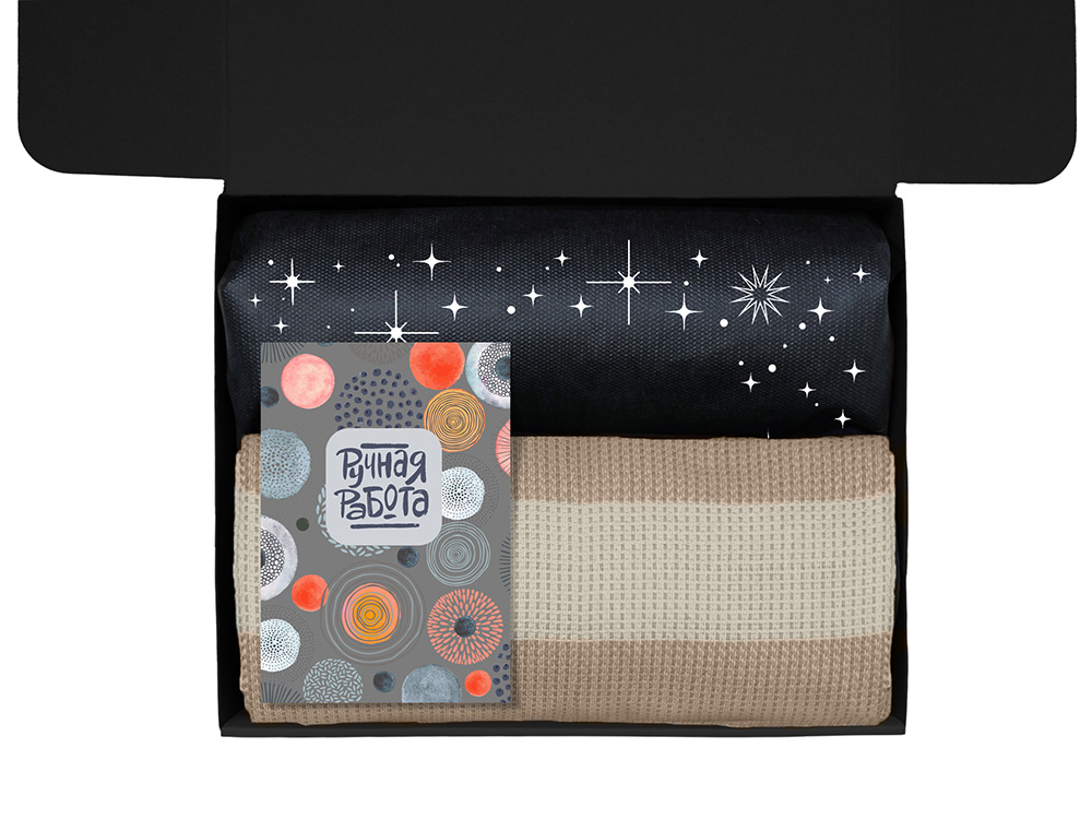 Материал товара плед - 100% хлопок, термос - нержавеющая сталь с покрытием софт-тач, чай - пластик, мешок - нетканый материал (спанбонд), коробка - картон