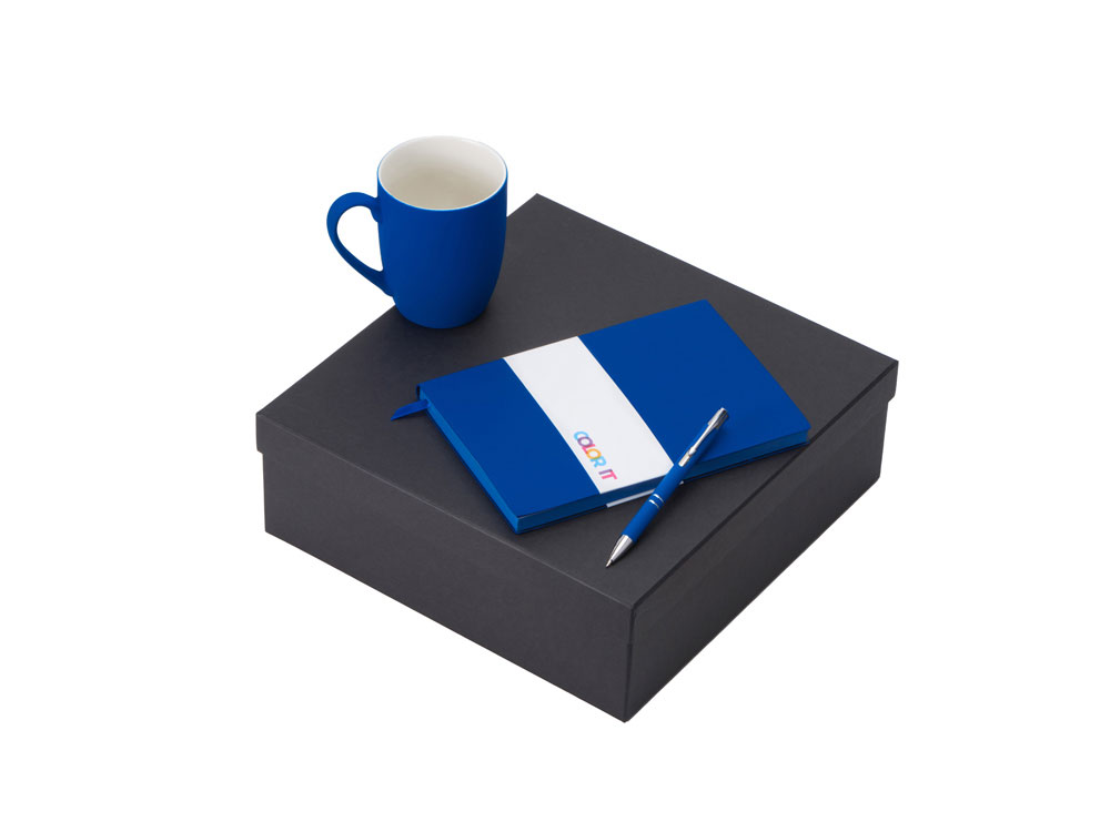 Color It — линейка, в которую входят хиты мерча в десяти самых популярных цветах. Еще никогда собрать сет под свой брендбук не было так просто. Широкая цветовая палитра серии позволяет создать идеальный набор в едином оттенке Pantone. Все товары имеют тактильно приятное покрытие софт-тач. Сет поставляется в коробке: мы продумали все, включая подарочную упаковку, за вас — осталось нанести лого! Фарфоровая кружка с удобной ручкой брендируется методом гравировки, поэтому нанесение будет долговечным и не сотрётся при мытье кружки. Бизнес-блокнот в твёрдой обложке имеет ляссе в тон обложки и среза. Бумажный блок разлинован в линейку и выполнен из бумаги, полученной из древесины из специальных восполняемых лесных ресурсов, имеет сертификат FSC. Шариковая ручка имеет сменный стержень, поэтому такой мерч прослужит дольше обычной одноразовой ручки, долго напоминая о вас клиентам. - объём кружки: 300 мл; - блокнот А5 128 листов; - ручка с необычным слайдером; - подарочная упаковка из картона, оклеенного дизайнерской бумагой уже включена в набор