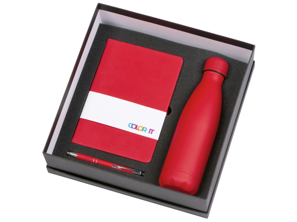| Материал товара | блокнот - искусственная кожа с покрытием софт-тач, ручка - алюминий с покрытием софт-тач, термобутылка - нержавеющая cталь с покрытием софт-тач, коробка - картон |