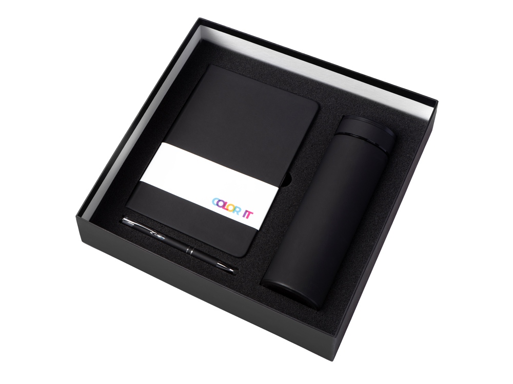 Подарочный набор с блокнотом С3, металлической ручкой и термосом, черный