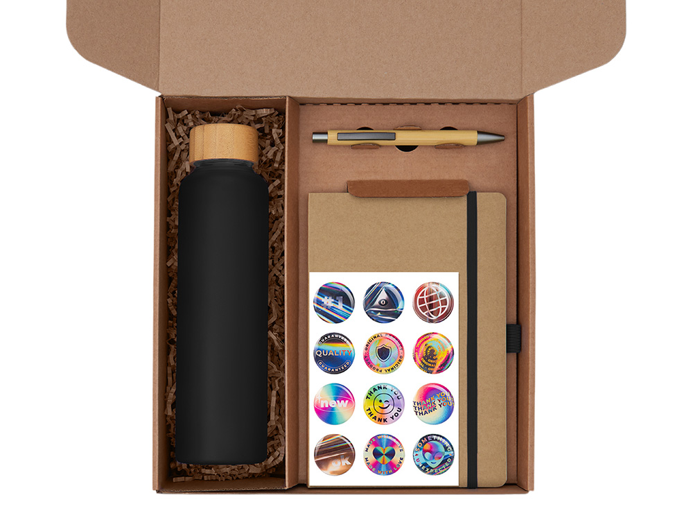 Набор Wooden станет отличным подарком для сотрудников, клиентов и партнёров, подчеркнёт внимание к их комфорту и заботу о деталях. Он уместен как корпоративный подарок на праздники, юбилеи и деловые мероприятия, так и в качестве welcome-набора для новых коллег. Набор объединяет всё необходимое для комфортного рабочего дня: Блокнот для идей, заметок и планов на день; Ручка, которая всегда под рукой; Стеклянная бутылка для воды объемом 600 мл., чтобы поддерживать водный баланс в течение дня; Бамбуковая подставка для телефона, чтобы держать гаджет в поле зрения во время работы или видеозвонков; Набор стикеров — для ярких акцентов и персонализации вещей Универсальный ложемент обеспечивает аккуратное размещение и надёжную фиксацию элементов, делая набор эффектным и презентабельным при вручении. Дополнительное преимущество — набор доступен в конструкторе наборов: компоненты можно заменить и собрать индивидуальный вариант под стиль компании или вкусы получателя.