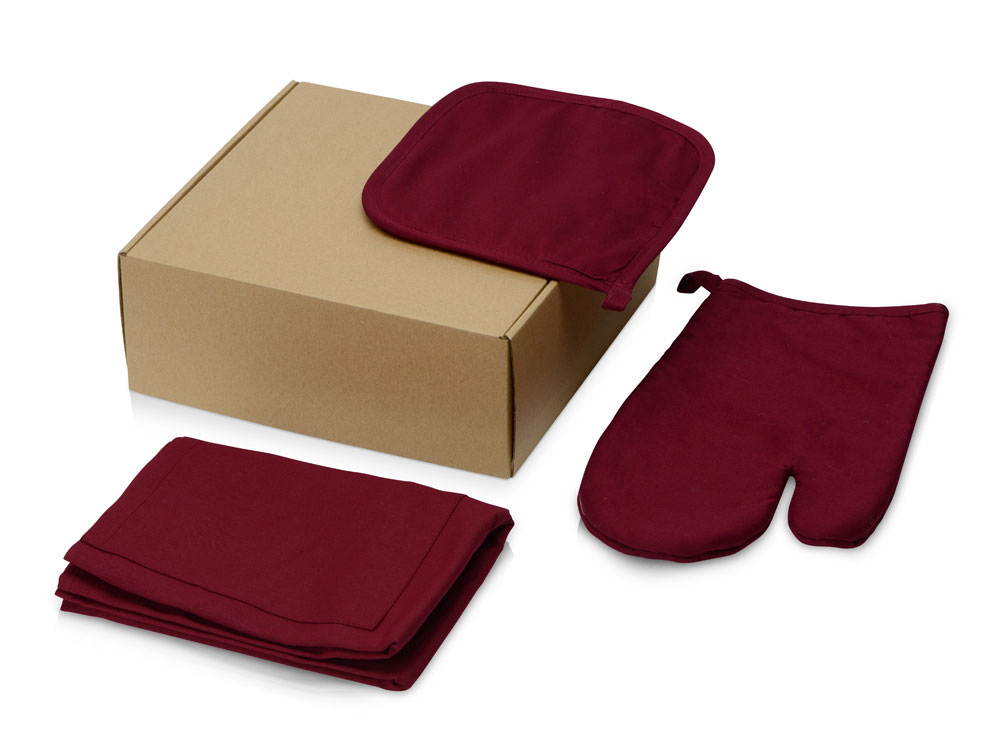 Подарочный набор с фартуком, прихваткой, бордовый купить оптом и в розницу с нанесением логотипа в Казани