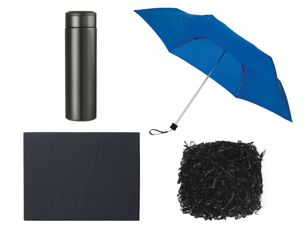Подарочный набор с зонтом и термосом, синий купить оптом и в розницу с нанесением логотипа в Казани