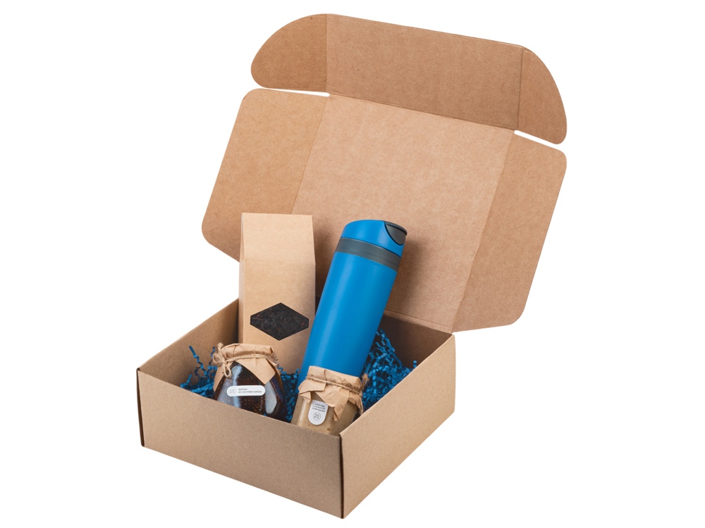 Материал товара коробка - картон, банка - стекло, термокружка - полипропилен