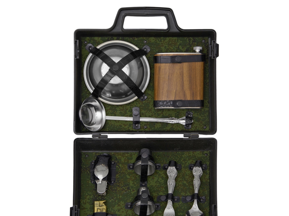 Погрузитесь в мир активного отдыха с нашим подарочным набором, созданным для любителей природы и приключений! Этот комплект содержит все необходимое для комфортного и практичного времяпрепровождения на свежем воздухе. Вас ждут: - 6 мисок из нержавеющей стали (500 мл) — легкие и долговечные, идеально подходят для порционных блюд и закусок. - 6 вилок и 6 ложек из нержавеющей стали — надежные и стильные столовые приборы, которые сделают прием пищи удобным и приятным. - 6 стопок из нержавеющей стали — для дружеских тостов и веселых встреч на природе. - Половник — необходимый аксессуар для сервировки супов и горячих блюд. - Фляжка — для хранения ваших любимых напитков и поддержания жажды во время активного отдыха. - Складной туристический нож — многофункциональный инструмент для приготовления пищи и решения повседневных задач. - Зажигалка — для быстрого разжигания костра и создания уюта. Все элементы набора выполнены из качественной нержавеющей стали, что обеспечивает долговечность и легкость в уходе. Упакованы в пластиковый кейс и надежно закреплены ремешками из натуральной кожи, что обеспечивает удобство транспортировки и сохранность содержимого.