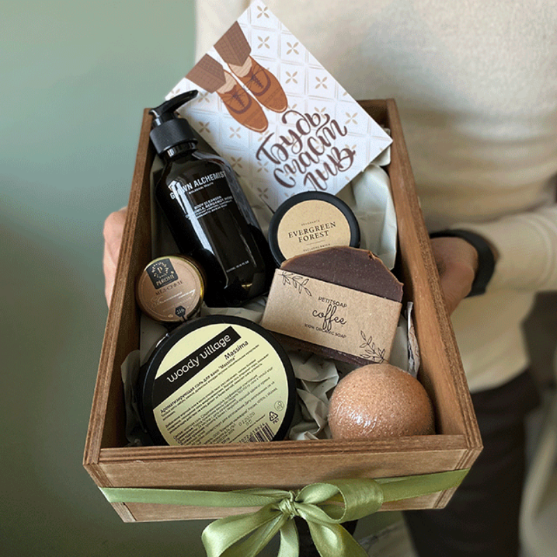 | Состав | гель для душа Grown alchemist, органическое кофейное мыло ручной работы, ароматизирующая соль для ванны Massima, интерьерная свеча, мед-суфле Peroni, дизайнерская открытка |