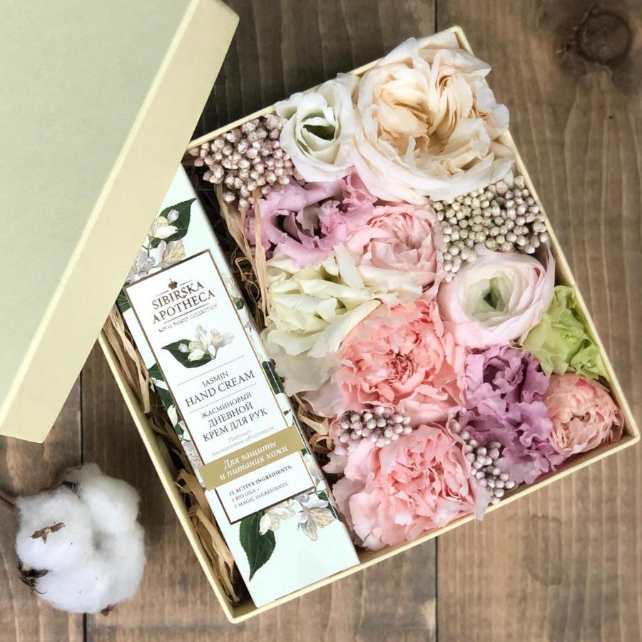 | В наборе | дневной крем для рук; цветы (озатамус, эустома, роза Охара, ранункулюс). |