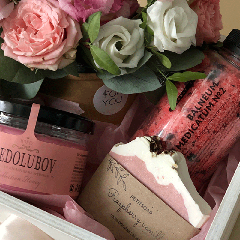 Купить Подарочный набор с цветами в деревянном коробе в интернет-магазине в Казани