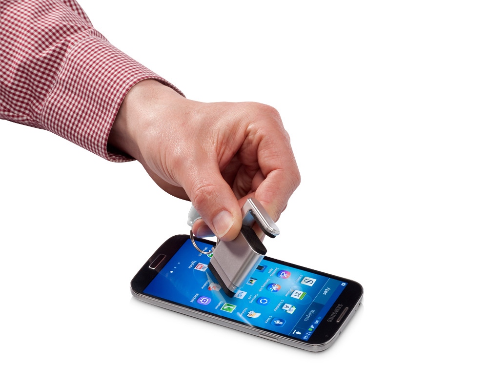 Подставка-брелок для мобильного телефона с губкой для чистки экрана. Функциональный промо-сувенир для продвижения цифровых устройств с сенсорным экраном: мобильных телефонов, планшетов, фотоаппаратов и т.д. Различные расцветки. Возможно нанесение изображения по вашему эскизу.