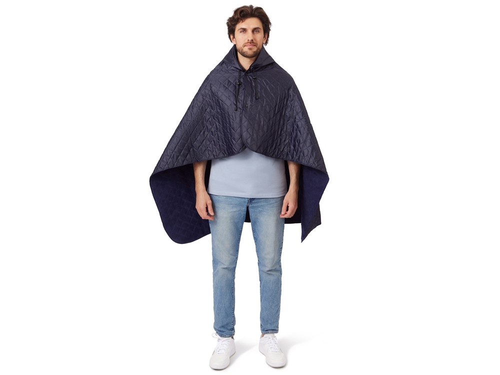 Плед 2-в-1 можно использовать как непромокаемое покрывало на землю и как согревающую и непромокаемую накидку во время пикника на природе. С одной стороны пледа водоотталкивающее покрытие, с другой - мягкий флис. На внутренней стороне из флиса приятно и тепло сидеть, а наружная сторона из полиэстера с водоотталкивающим покрытием не позволяет пледу намокнуть или сильно испачкаться. Для больше удобства использования пледа во время дождя в комплекте идет капюшон, который фиксируется с помощью липучки. Накинув плед на плечи, застегните его на кнопки вверху и наденьте капюшон. Вы не промокните во время неожиданного дождя! В комплекте идет мешок для хранения, который можно использовать для нанесения вашего логотипа.