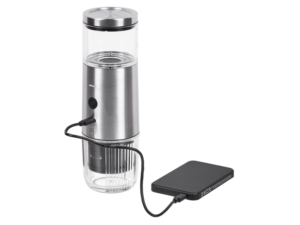 Выпить свежесваренный кофе на пикнике? Нет ничего проще! С портативной кофемашиной от бренда Eat&Bite select кофе всегда будет у Вас под рукой! Приготовить можно 2 вида кофе — эспрессо и лунго (40 и 100 мл) двумя способами: заварить молотый кофе или капсулу типа Nespresso. Для каждого способа заваривания есть своя ёмкость. Мерная ложечка для молотого кофе идёт в комплекте. Кофемашина проста в использовании, а высококачественные материалы обеспечат долгий срок службы устройства. Как использовать (на примере с капсулой): 1) Раскрутить с обеих сторон резервуары. 2) Установить капсулу в соответствующую мини-емкость, немного нажать, чтобы капсула в ней крепко зафиксировалась. 3) Далее установить эту мини-емкость в резервуар, предназначенный для кофе и его же закрутить к основному корпусу машины. 4) Емкость для воды заполнить горячей водой и закрутить к корпусу с обратной стороны. Для эспрессо наливаем 40 мл, для лунго 100 мл воды. 5) Закрыть крышкой, подставить чашу для кофе, нажать на кнопку включения. 6) По окончании приготовления кофе, машина автоматически остановится. Robusta — отличный спутник в командировке или поездке в автомобиле. На одном заряде кофемашина может приготовить до 60 чашек кофе, и точно подарит заядлому кофеману возможность почувствовать себя комфортно вдали от дома. Мыть кофемашину необходимо только вручную, мойка в посудомоечной машине не подходит. - 2 вида кофе (эспрессо/лунго, 40/100 мл); - 2 способа использования: капсулы типа Nespresso, молотый кофе - до 60 чашек на одной зарядке; - удобно брать в дорогу; - ёмкость аккумулятора 2000 мАч; - мерная ложка в комплекте; - только для ручной мойки.
