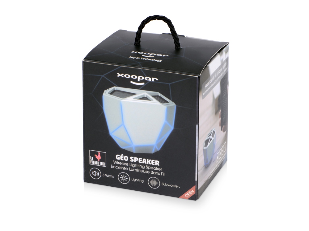 Портативная колонка Geo, мокрый асфальт + белая подсветка купить оптом и в розницу с нанесением логотипа в Казани