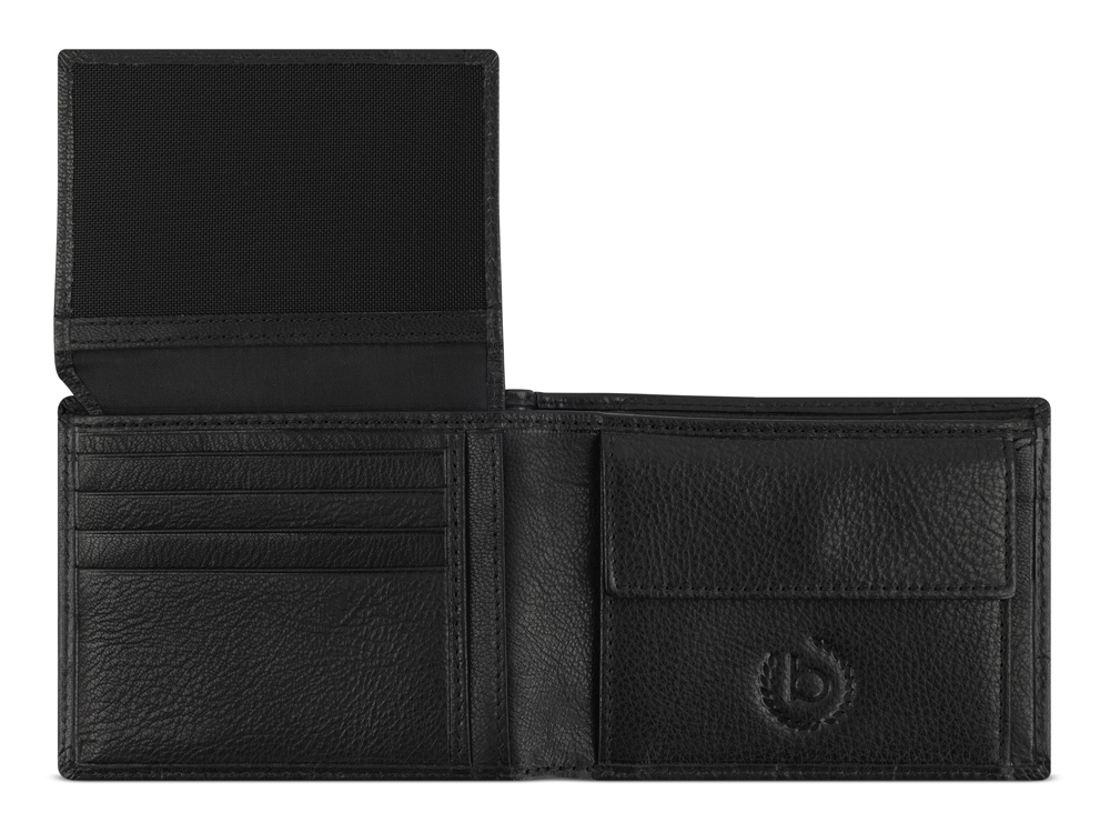 Портмоне BUGATTI Nevio, чёрный, воловья кожа/козья кожа/полиэстер, 12,5х2,5х9,3 см