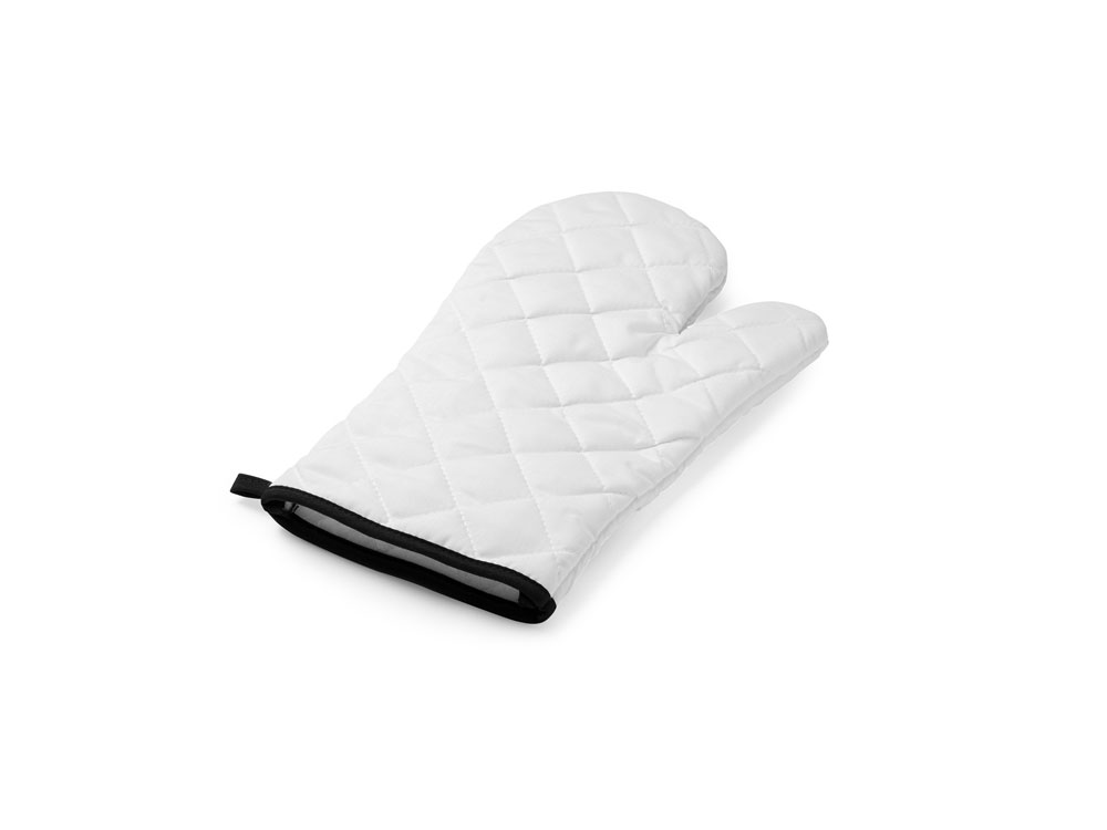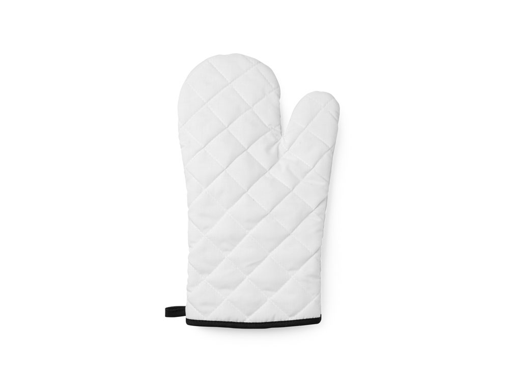 Прихватка из полиэстера. Выполнена в белом цвете с цветными краями. Гладкая сторона идеально подходит для сублимации.